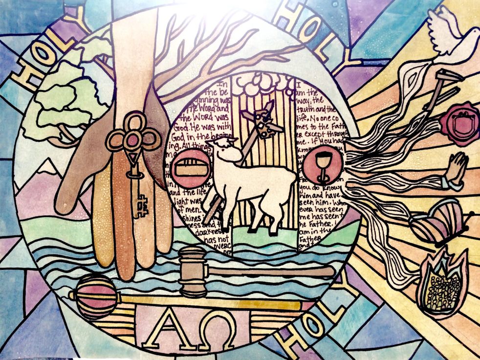 Around all three, I wrote the words “Holy, Holy, Holy” based of Isaiah 6, surrounded by colors of blue reflecting the majesty and power of the One who is seated on throne and worthy of our ultimate worship.